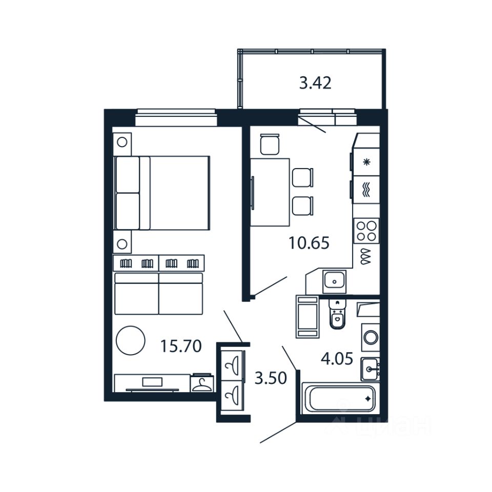 Прямая продажа от застройщика! Готовая Однокомнатная квартира 6/11/10 33.3 кв.м с кухней 10.65 кв.м с предчистовой отделкой на 11 этаже в сданном ЖК "Полис Лаврики".
