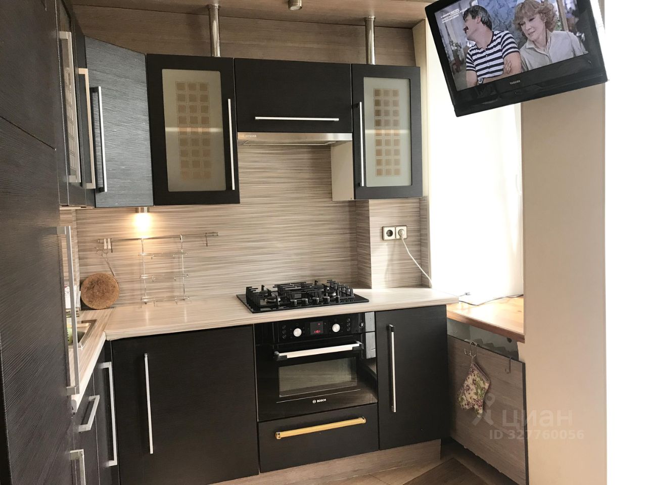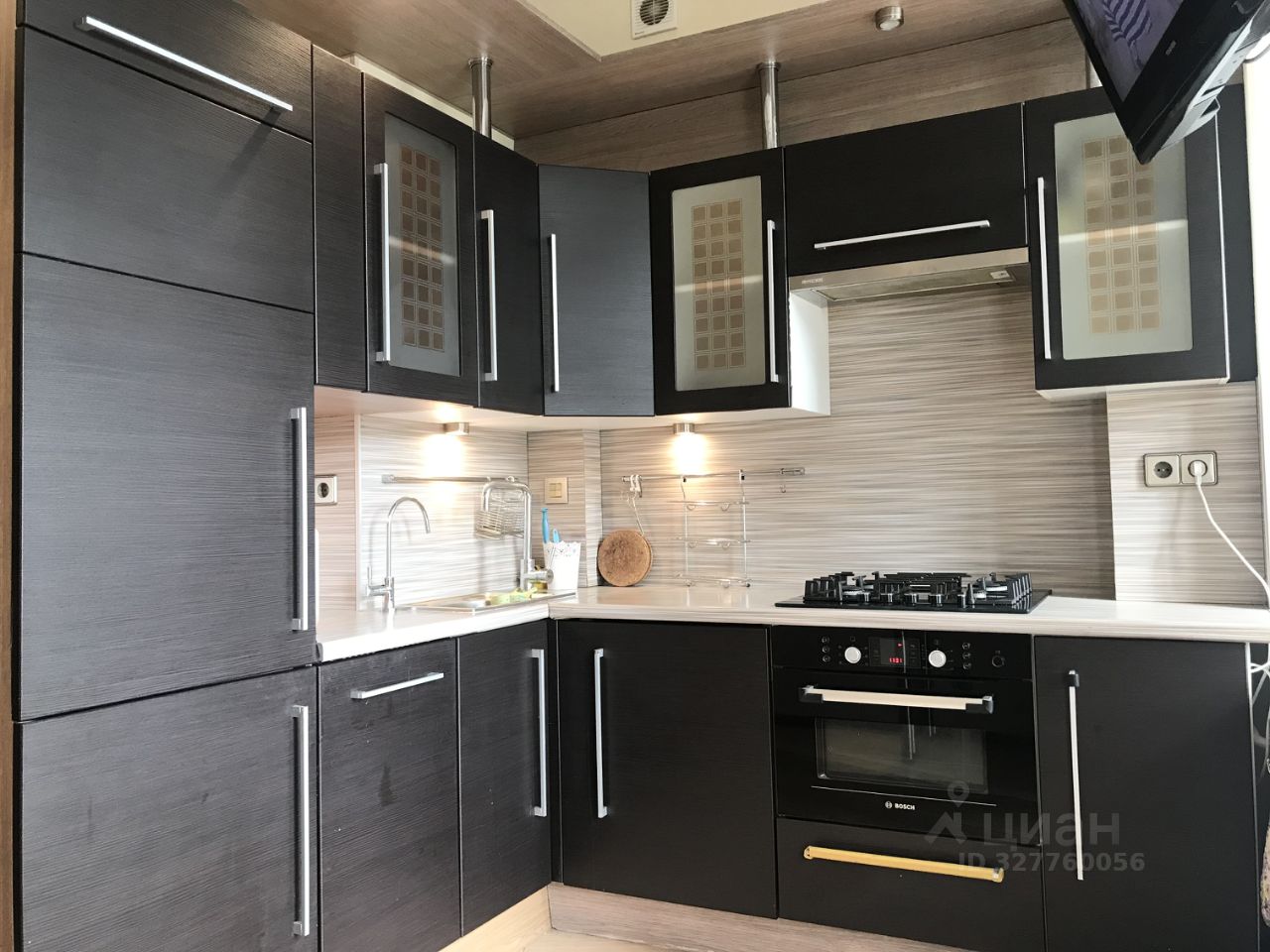 На кухне встроенный холодильник Liebherr, посудомоечная машина Bosch, стиральная машина Bosch, электрический духовой шкаф Bosch, встроенная газовая варочная поверхность Bosch.