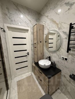 Санузел совмещенный, установлена новая сантехника, душевая кабина, бойлер, фильтры для очистки воды. В прихожей предусмотрена гардеробная, где расположилась стиральная машина. На кухне, в коридоре и санузле - теплые полы.