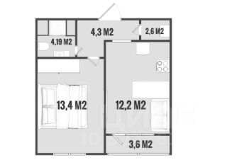 Общая площадь 35,3 м2 + 4 м2 лоджия