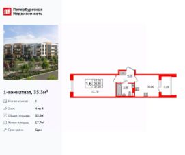 Удобная, классическая планировка, кухня 10 м², вместительная прихожая 4 м². Общая площадь квартиры - 35.3 м², жилая 17.7 м², высота потолка 3.04 м.