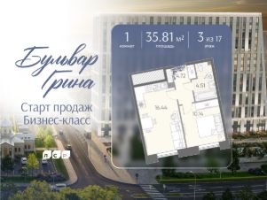 Продается 1-комнатная квартира в ЖК "Бульвар Грина" на 3 этаже. Общая площадь составляет 35.81 кв. м. Квартира с white box отделкой. Срок сдачи: 4-кв. 2028. Жилой комплекс "Бульвар Грина" располагается по адресу Санкт-Петербург, Василеостровский.