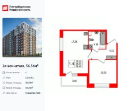 Удобная, классическая, функциональная европланировка, большая кухня-гостиная 17.39 м², просторная прихожая 4.72 м². Общая площадь квартиры - 36.54 м², жилая 10.25 м², высота потолка 3 м.