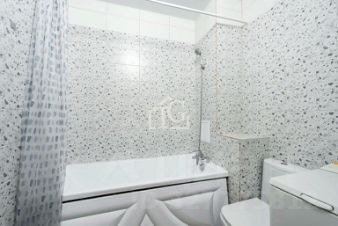 В санузле — плитка на полу и установлен тёплый пол