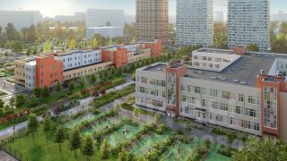 На территории комплекса находятся наземные паркинги, гостевые парковки, детский сад, школа. В пешей доступности расположены магазины, кафе, аптеки и прочие удобства, необходимые для спокойной и комфортной жизни. Во дворах устроены пешеходные зоны, дворы озеленены и благоустроены: имеются тенистые аллеи, уютные зоны для отдыха детей и взрослых, а также стильные плей-хабы.