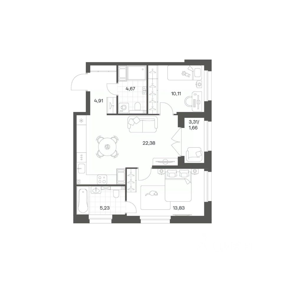 Квартал рассчитан на семейных покупателей, поэтому здесь нет студий: только одно-, двух- и трёхкомнатные квартиры. В проекте представлены квартиры с кухнями-гостиными, мастер-спальнями, гардеробными и кладовыми.