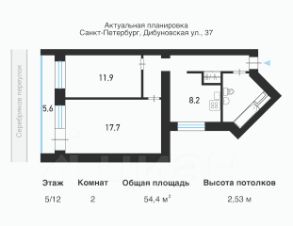 2-комнатная квартира площадью 54,4 м.кв.