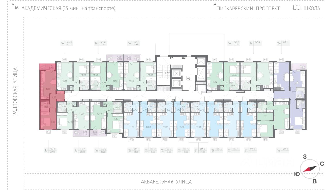 • Удобное расположение. В пешей доступности ж/д станция "Ручьи", выезд на КАД в 5 минутах на авто, в перспективе появится метро.