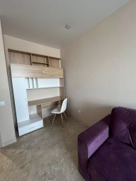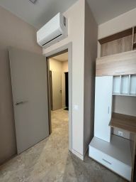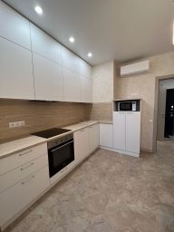В квартире сделан евроремонт. На полу кварцвинил, на стенах обои, в санузле керамическая плитка. Установлены кондиционеры в каждой комнате. Имеется отдельная гардеробная с системой хранения. Просторная и светлая комната, современная мебель и техника, которые остаются для новых владельцев, создают атмосферу уюта и комфорта. Санузел совмещенный и выполнен в современном стиле. На кухне достаточно места для готовки и семейных ужинов. Установлена варочная поверхность, духовой шкаф, холодильник двухкам ерный, посудомоечная машина, стиральная машина, микроволновая печь. Имеется лоджия, где можно насладиться свежим воздухом и видом на двор.