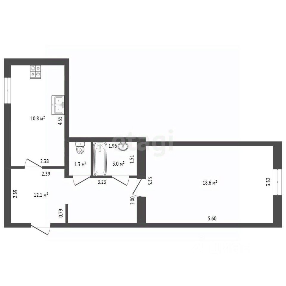 Объект предлагает редкую для однокомнатной планировки площадь, что позволяет создать комфортное и функциональное жилое пространство. Кухня 10,8 м² легко вместит обеденную зону, а изолированная комната 18,6 м² обеспечивает приватность. Практичный коридор площадью 12,1 м² предоставляет значительные возможности для организации встроенных систем хранения.