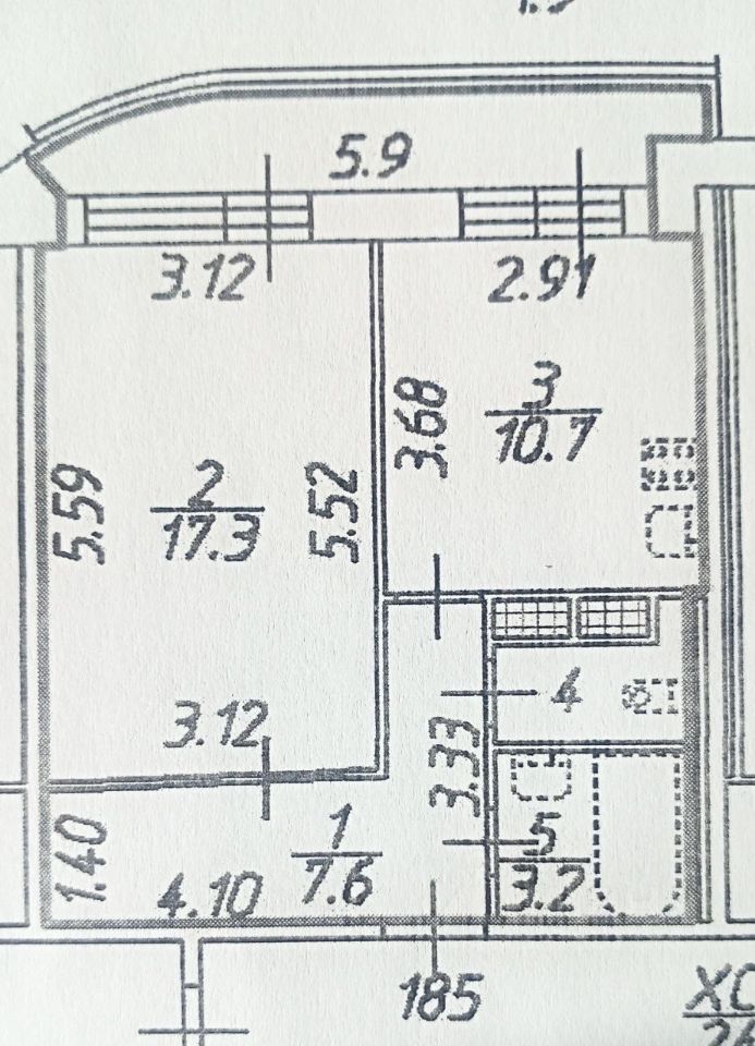 Общая площадь 40,7 м² + балкон 5,9 м².