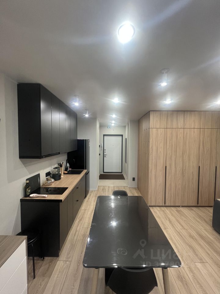 В квартире выполнен дизайнерский ремонт с использованием качественных материалов. Просторная студия грамотно зонирована и оборудована всем необходимым для комфортной жизни. Совмещенный санузел оформлен в современном стиле. Изюминкой квартиры является балкон, где можно наслаждаться утренним кофе с видом на город.
