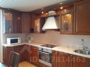 Большая кухня 12 м2. Остается итальянский кухонный гарнитур из массива красного дерева по всю длину стены с углом. Встроенная европейская бытовая техника: электроплита BOSCH, посудомоечная машина Zanussi, стиральная машина Ariston вместимостью 5,5 кг, кухонная вытяжка.