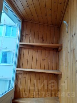 Лоджия остеклена и полностью обшита деревом (выход из кухни).