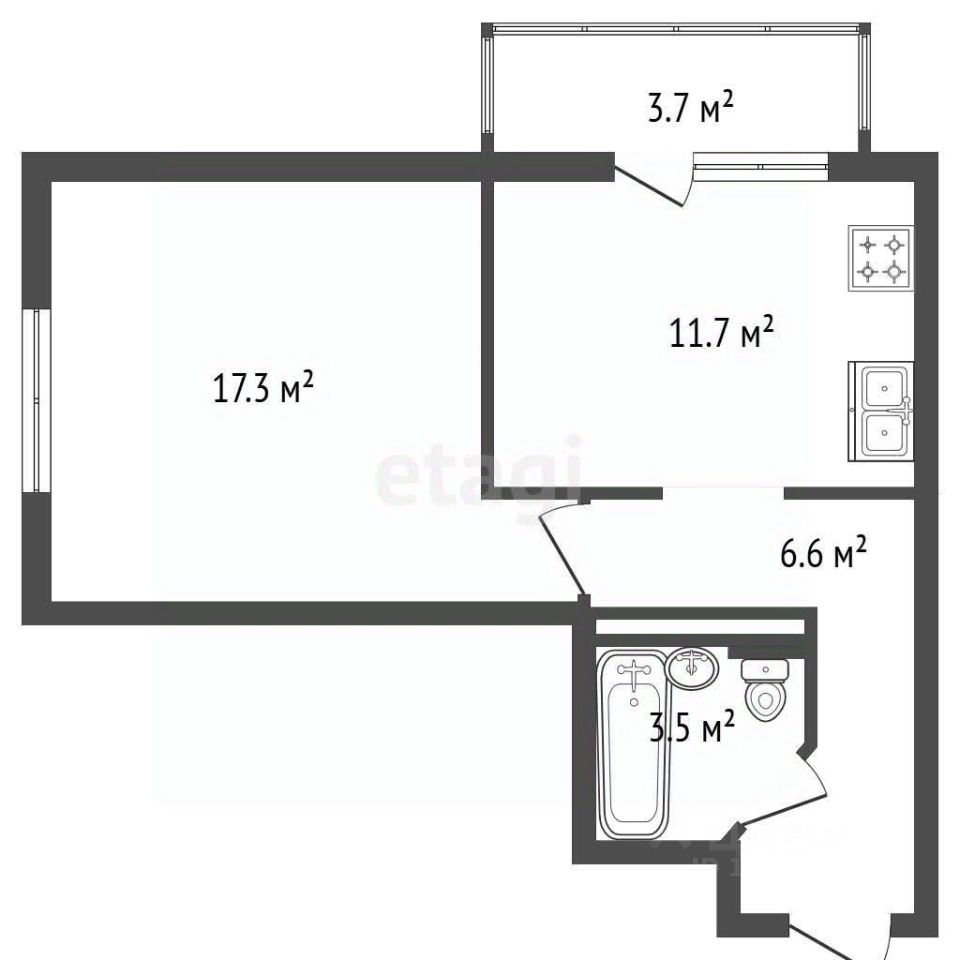 Общая площадь с учетом балкона : 42,8 кв.м.