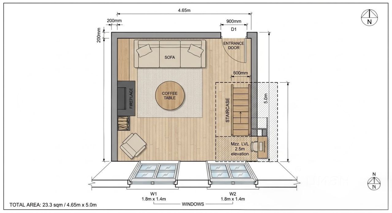 Площадь 23,3 м². Комната находится сразу слева от парадного входа в квартиру. Вам не нужно проходить через весь коридор мимо других комнат — это обеспечивает максимальную приватность.
