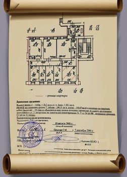 Внутри установлена стационарная перегородка до потолка, разделяющая пространство на две части.