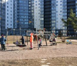Во дворе дома шикарная, большая по площади, детская площадка. Так же, рядом с детской площадкой, хорошее место с лавочками для досуга возрастных людей и мамочек с колясками. Чуть в стороне от детской площадки имеется функциональная спортивная зона отдыха.