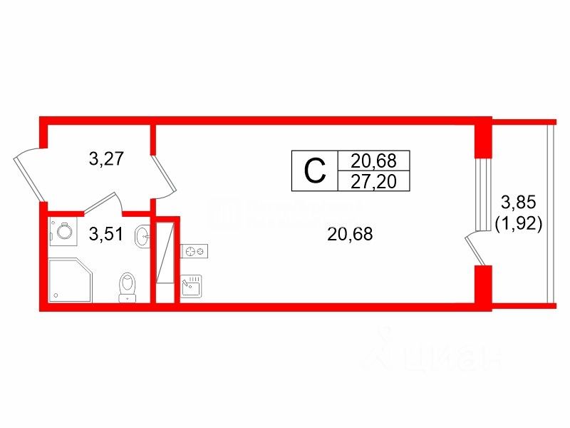 Продаётся очень светлая, уютная студия общей площадью 27,2 м. на счастливом 13-ом этаже.