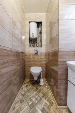 В туалете установлена дополнительная раковина, что делает квартиру особенно удобной для семьи