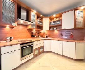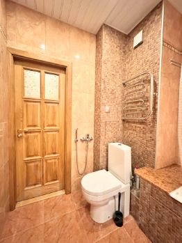 Квартира полностью укомплектована всей необходимой техникой премиальных брендов, мебелью из натурального дуба. В квартире сделан качественный ремонт с использованием материалов высокого класса, на полу уложен тиковый паркет и керамогранит, внутренние дверные коробки и двери из натурального дуба-ручная работа на заказ, в ванной комнате европейская сантехника и натуральный мрамор.