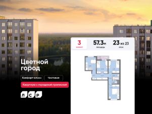 Продается 3-комнатная квартира в ЖК "Цветной город" на 23 этаже. Общая площадь составляет 57.30 кв. м. Квартира с чистовой отделкой Срок сдачи дома: 3 квартал 2026. Жилой комплекс "Цветной город" располагается по адресу Санкт-Петербург, Красногвардейский.