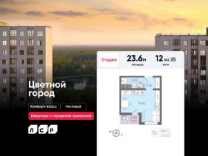 Продается студия в ЖК "Цветной город" на 12 этаже. Общая площадь составляет 23.60 кв. м. Квартира с чистовой отделкой Срок сдачи дома: 3 квартал 2026. Жилой комплекс "Цветной город" располагается по адресу Санкт-Петербург, Красногвардейский.