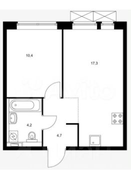 Планировка: Просторная кухня-гостиная (17.3 м²) для уютных вечеров + изолированная спальня (10 м²) для полноценного отдыха.