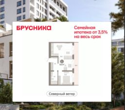 1-комн. квартира от застройщика с предчистовой отделкой в ЖК "Северный ветер" на 8 этаже. Общая площадь: 60.62 кв.м., жилая: 10.9 кв.м., площадь просторной кухни-столовой: 28.3 кв.м. Все окна выходят на одну сторону. В квартире один балкон, один совмещенный санузел. Наличие в квартире террасы открывает возможность для обустройства дополнительной площади. Высота потолков 2.98 м.