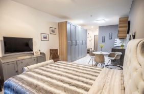 Апартаменты расположены в здании апартамент комплекса нового строительства, построены и функционируют в соответствии со всеми нормативами и регламентами градостроительного законодательства. Назначение земельного участка - объекты гостиничной инфраструктуры.