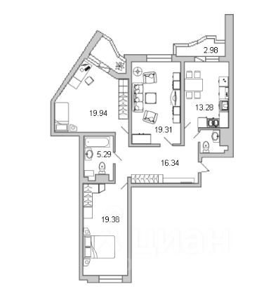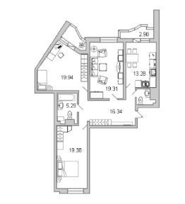 3 комнатная квартира. Просвещения 43. Продается от застройщика. Семейная ипотека. Распложена на 6 этаже 25 этажного дома. Кухня 13.28, комната 19.31, комната 19.94, комната 19.38, в квартире есть место под гардеробную, большая остекленная лоджия, вид из окон на благоустроенный двор. В квартире выполнена отделка подчистовая.