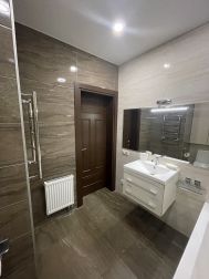 **Санузел:** Просторный, установлена премиальная сантехника (Германия): ванна из искусственного мрамора, стильные смесители, гигиенический душ.