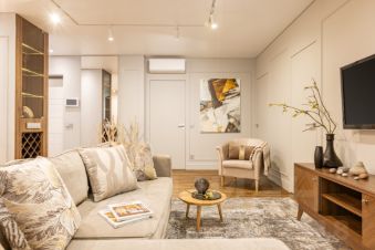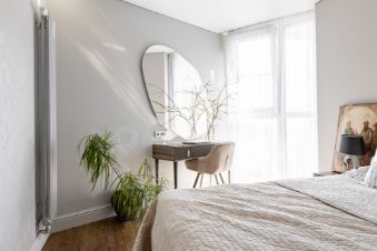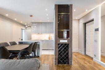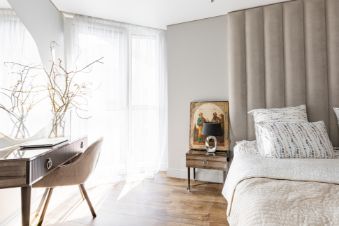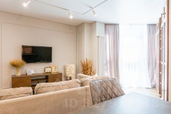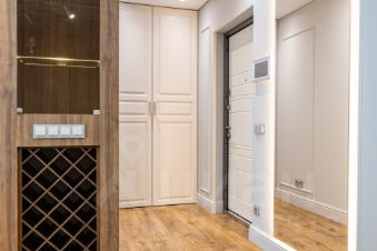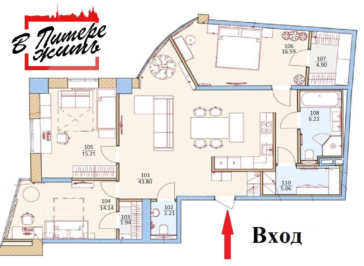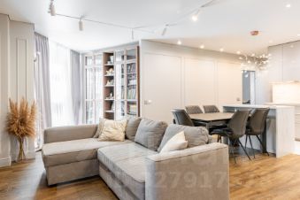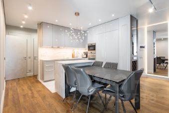 ВИДОВАЯ квартира находится на 33-м этаже. Подъем на этаж в лифте - по специальному ключу. Видеодомофон с камерами на лестницу, на лифтовой холл и на вход в квартиру. В квартире хорошая функциональная планировка: три комнаты 13,31 кв.м. + 16,59 кв.м. + 14,14, огромная кухня-гостиная 43,8 кв.м. , в двух комнатах гардеробные, два санузла. В квартире сделан качественный евроремонт, на полу паркетная доска, в санузлах и кухонной зоне плитка. БОЛЬШАЯ ЧАСТЬ МЕБЕЛИ И ТЕХНИКИ ОСТАНЕТСЯ В ПОДАРОК.