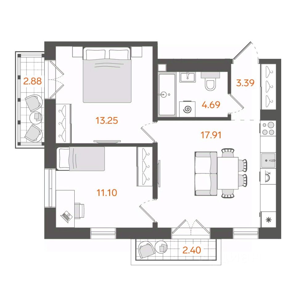 Продается 2-комнатная квартира 62 в жилом проекте бизнес-класса в Адмиралтейском районе