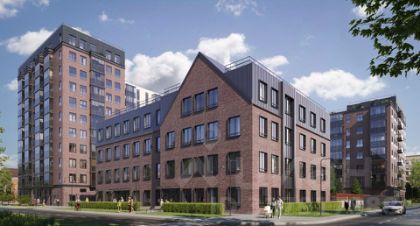 Одной из отличительных черт проекта стал четырёхэтажный объём с двускатной кровлей на юго восточном углу участка. В нём разместится современное поликлиническое отделение — это решение подчёркивает внимание к потребностям жителей уже на этапе планировки.