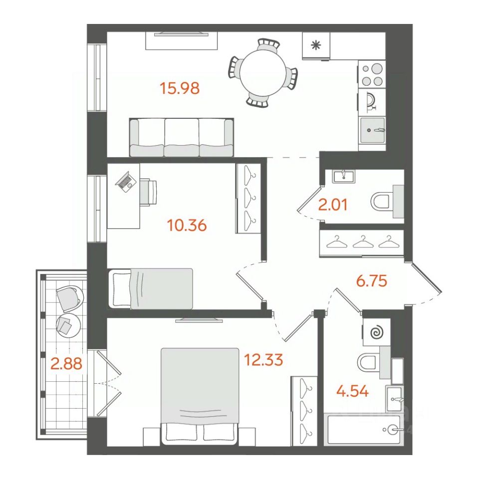 В комплексе представлены различные варианты жилья: от компактных студий до трёхкомнатных квартир. Особую ценность представляют лоты на верхних этажах — в них есть террасы и камины. Ограниченная этажность комплекса (не более 12 этажей) создаёт ощущение приватности и уюта, характерное для малоэтажных проектов.
