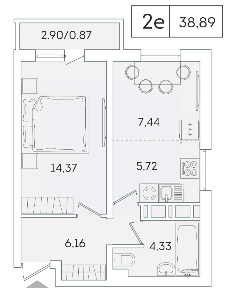 В продаже от застройщика 1 комнатная квартира 38.1 кв. м с черновой отделкой и практичной планировкой для удобной организации пространства. Корпус сдан, идет выдача ключей.
