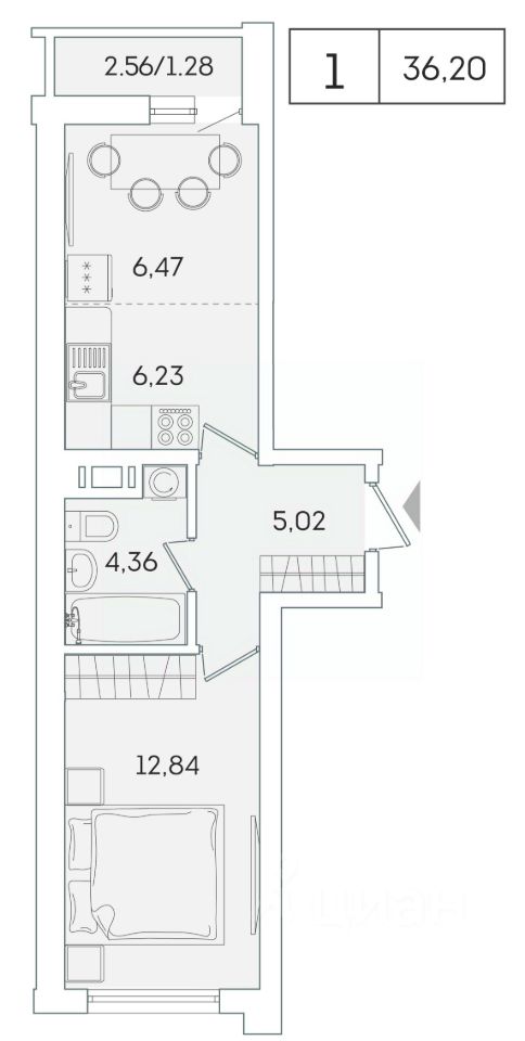 В продаже от застройщика 1 комнатная квартира 34.9 кв. м с черновой отделкой и практичной планировкой для удобной организации пространства. Корпус сдан, идет выдача ключей.