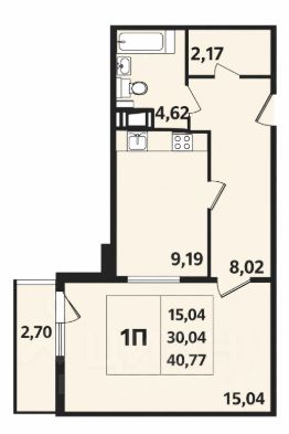 Балкон (2,7 м²) и Санузел (4,62 м²).