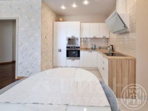 Квартира очень светлая, ее удобная планировка предполагает просторную прихожую, совмещенный санузел с ванной, кухню с выходом на застекленную лоджию, 2 комнаты. В одной из комнат закругленная стена с большим окном, что добавляет много света и изысканности. В комнате установлен кондиционер.