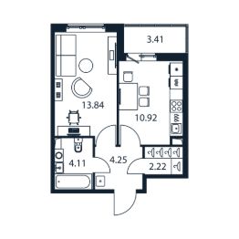 Прямая продажа от застройщика! Готовая Однокомнатная квартира 34.5 кв.м с кухней 10.92 кв.м с чистовой отделкой на 1 этаже в сданном ЖК "Полис Лаврики".