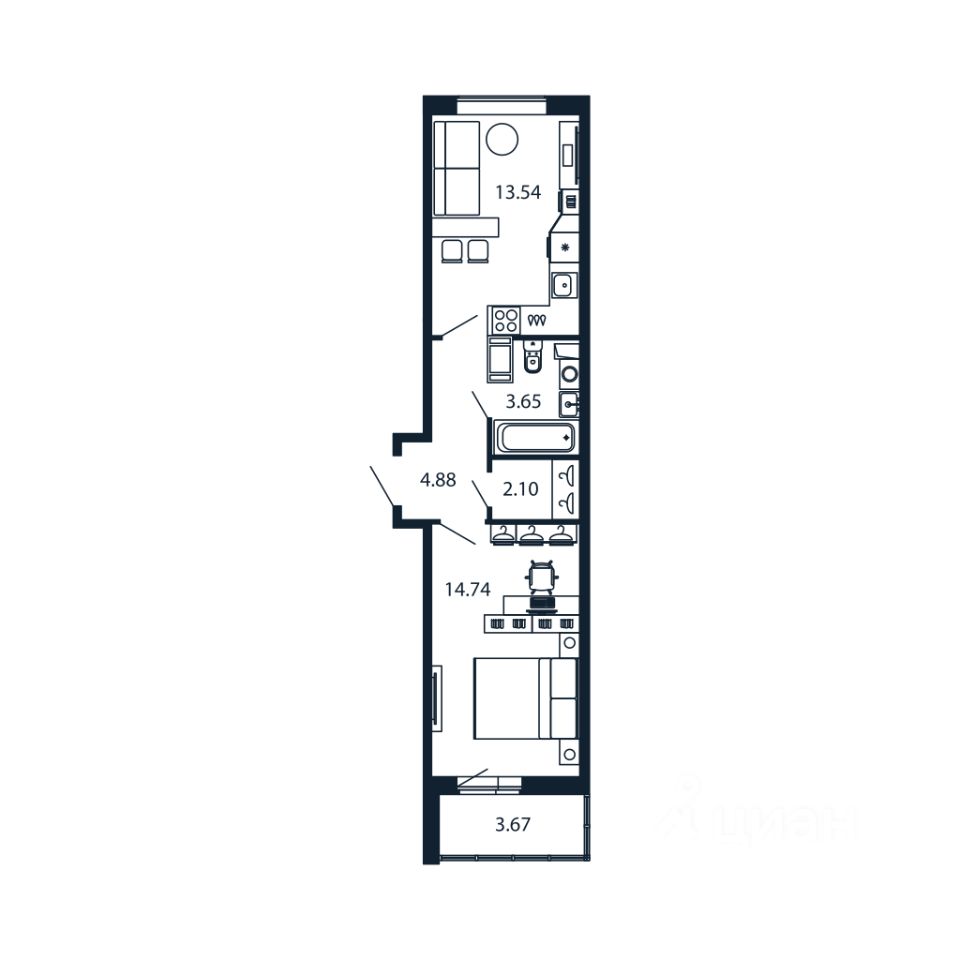 Прямая продажа от застройщика! Готовая Однокомнатная квартира 37.8 кв.м с кухней 13.54 кв.м с предчистовой отделкой на 3 этаже в сданном ЖК "Полис Лаврики".