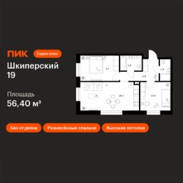 Продаётся 2-комн. квартира площадью 56,4 кв.м на 1 этаже 8 этажного дома (Корпус 2, Секция 3) проекта ПИК Шкиперский 19. Светлый просторный подъезд на уровне земли, функциональная планировка, большие окна, без отделки.
