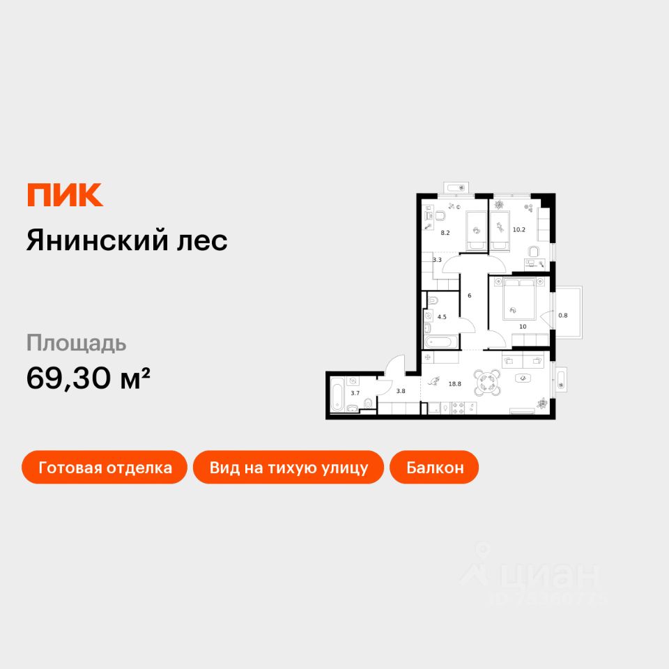 Продаётся 3-комн. квартира площадью 69,3 кв.м на 4 этаже 15 этажного дома (Корпус 1, Секция 2) проекта ПИК Янинский лес. Светлый просторный подъезд на уровне земли, функциональная планировка, большие окна, c отделкой.