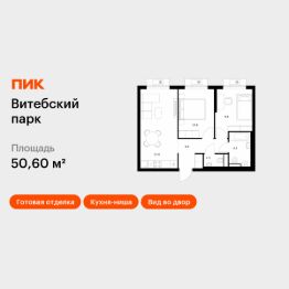 Продаётся 2-комн. квартира площадью 50,6 кв.м на 3 этаже 12 этажного дома (Корпус 6, Секция 4) проекта ПИК Витебский парк. Светлый просторный подъезд на уровне земли, функциональная планировка, большие окна, c отделкой.