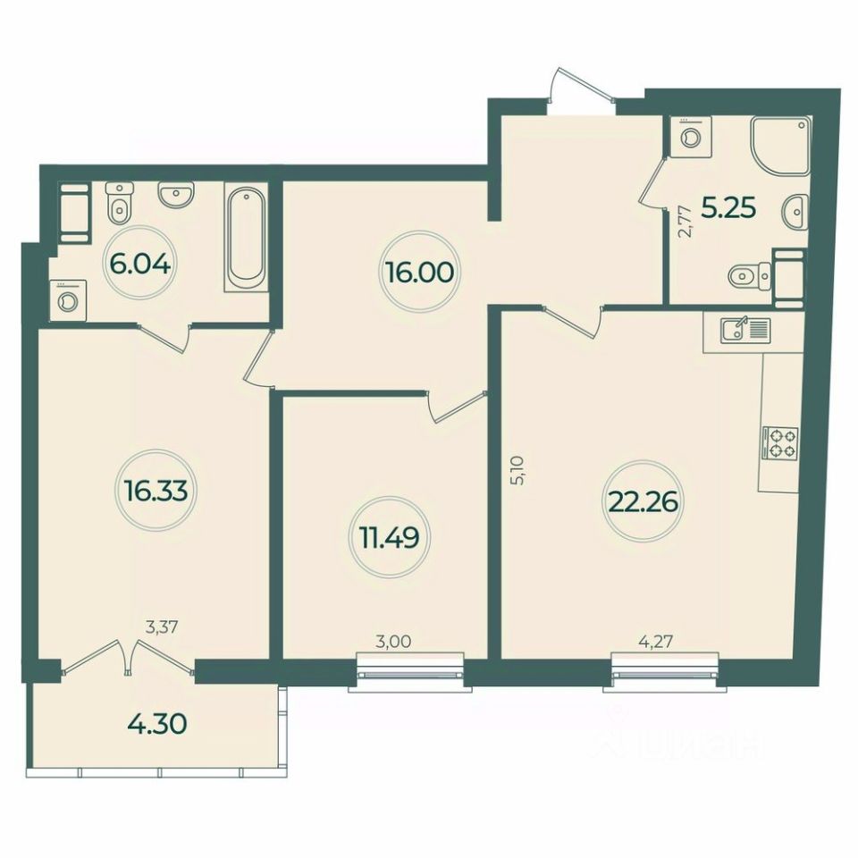 Площадь кухни22,3 м²