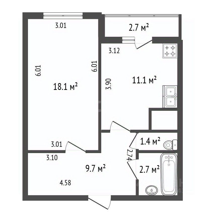 Удобства: отдельная гардеробная, совмещенный с/у, застекленная лоджия 2,7 м².