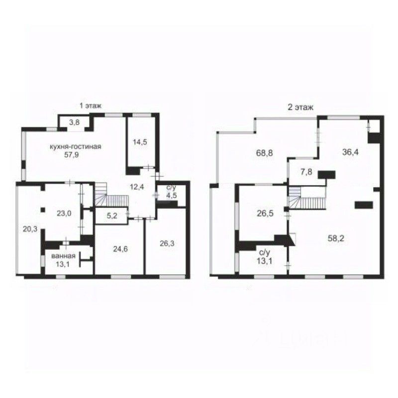 - Санузел с окном; - Комнаты 58,2 м и 36,4 м образующие единое пространство;