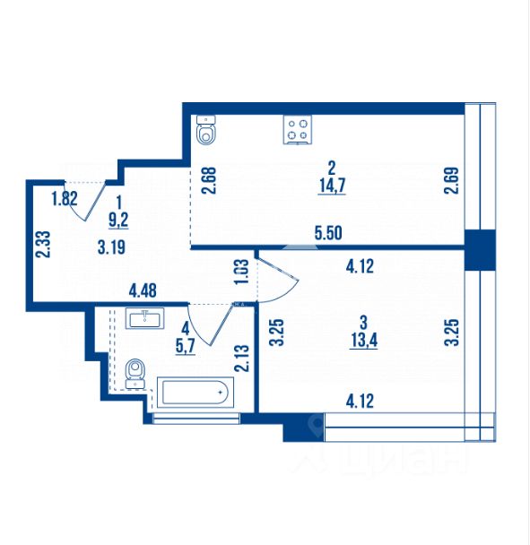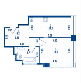 Площадь 43 м²