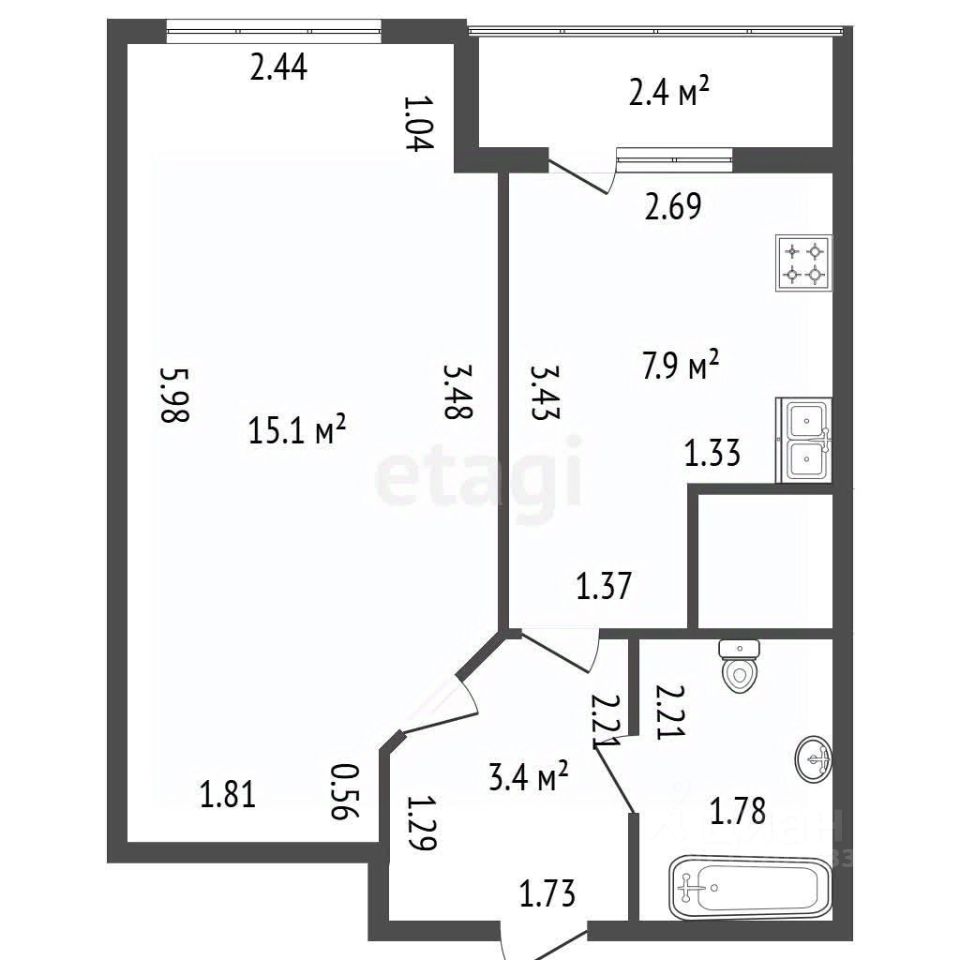 Кухня - 7,9 кв.м. + лоджия 2,4 кв.м.